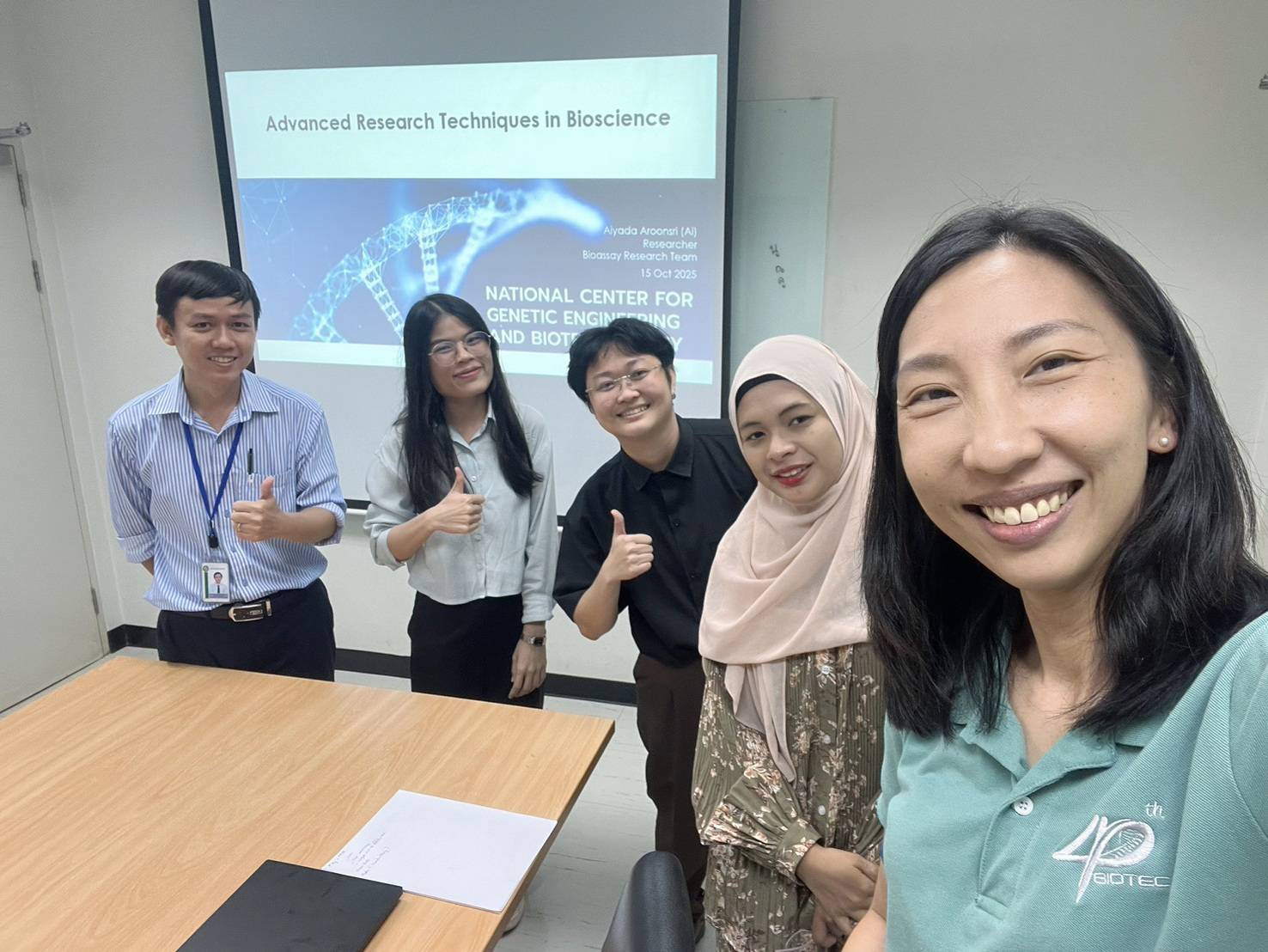 On October 15, 2025, the MS & PhD Bioscience Program organized an educational field trip for students enrolled in the 691 Advanced Research Techniques course. The delegation visited the National Center for Genetic Engineering and Biotechnology (BIOTEC), the National Nanotechnology Center (NANOTEC), and the National Broadcasting Services of Thailand (NBT).