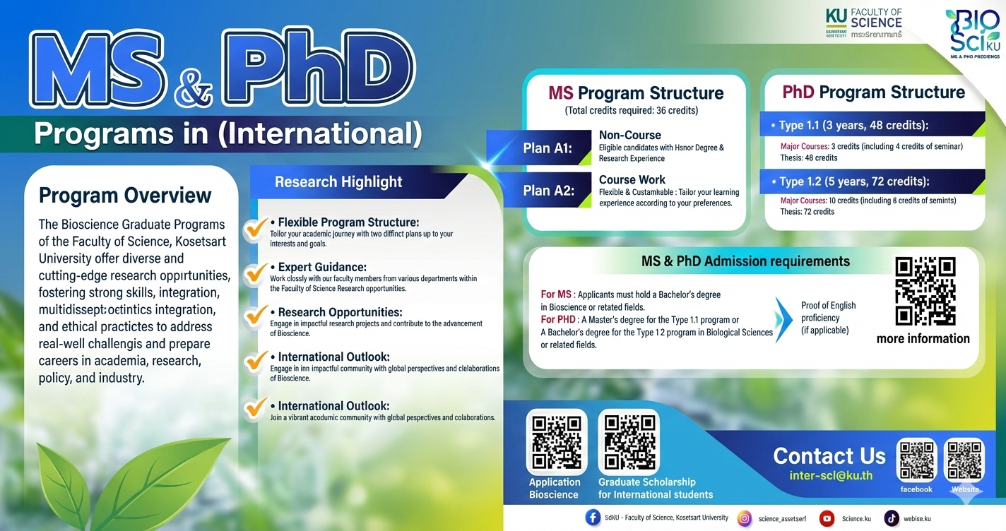 🧬หลักสูตร MS & PhD Programs in Bioscience