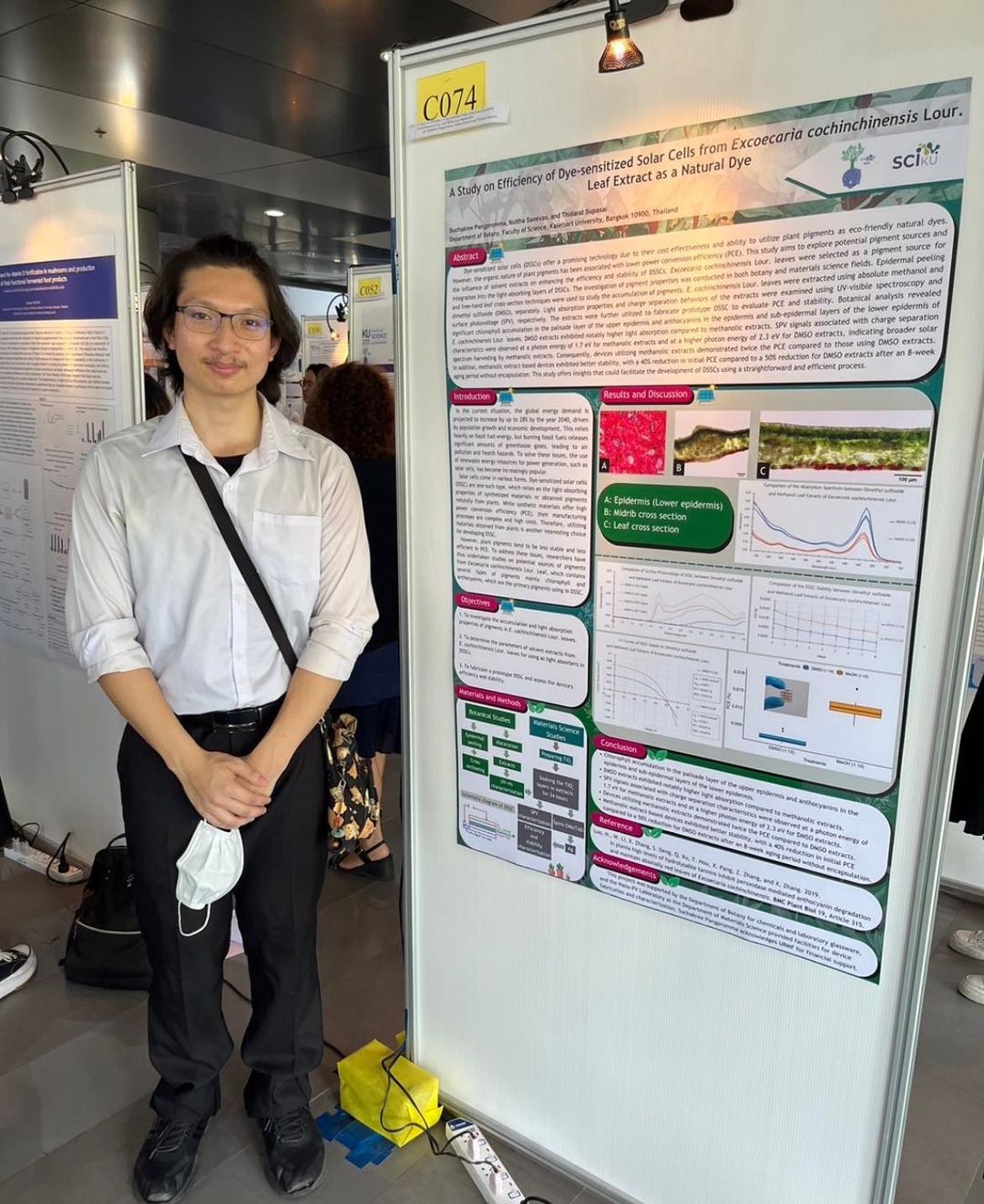- เหนือ สุชาครีย์ แพงพรหมมา ที่ได้รับรางวัลรองชนะเลิศอันดับ 1 จากการนำเสนองานแบบโปสเตอร์กผลงานในหัวข้อ A study on efficiency of dye-sensitized solar cells from Exoecoria cochinchinensis Lour. leaf extract as a natural dye