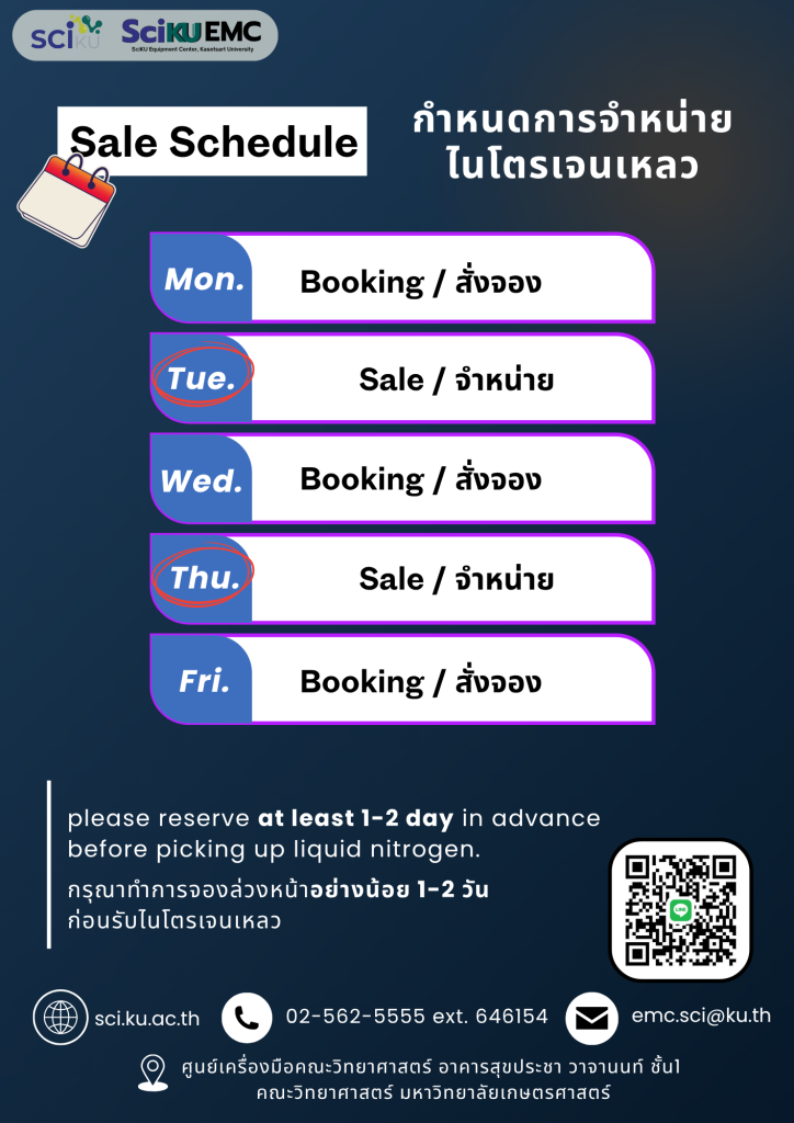 - ทำการจองล่วงหน้าอย่างน้อย 1-2 วัน ในระบบ *ตรวจสอบกำหนดการจำหน่ายไนโตรเจนเหลวดังตาราง