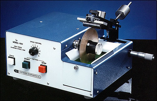 เครื่องสำหรับตัดวัสดุที่หลากหลายโดยทำให้เกิดความเสียหายใต้ผิวงานน้อยที่สุด ความเร็วต่ำช่วยให้สามารถตัดวัสดุที่เปราะบางหรืออ่อนนุ่มได้โดยไม่ทำให้แตกร้าวหรือติดขัด สามารถปรับใช้กับตัวจับชิ้นงานได้หลายรูปแบบ และยังสามารถใช้กับเครื่องวัดมุม (goniometer) สำหรับการตัดผลึกที่มีทิศทางเฉพาะได้อีกด้วย